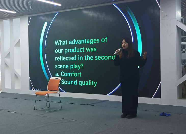 产品展示技能大赛分为初赛和决赛两个阶段,并且全程采用英语。初赛采用视频参赛形式,各参赛团队需要拍摄七分钟的产品发布会视频展示他们的产品理念、产品特点、创意亮点等。评审团依据视频内容的创新性、英语口语能力和表达效果等多维度标准,进行了严格公正的筛选,最终确定了晋级决赛的团队名单。