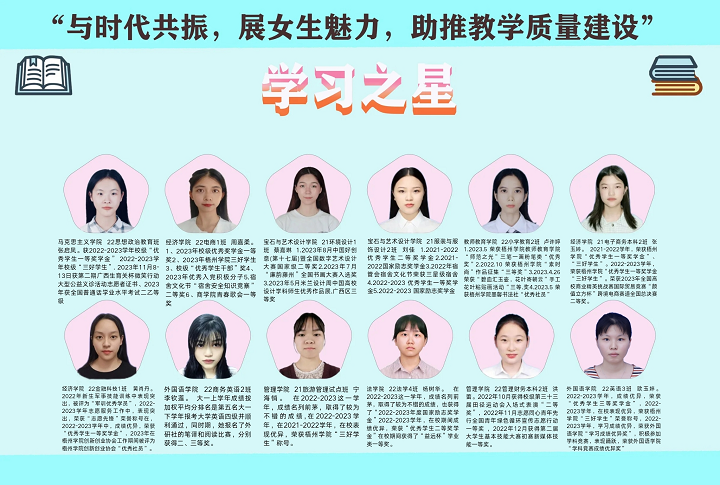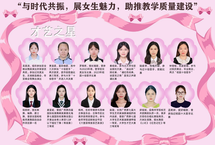 本次“完美女生”比赛由校团委主办,best365官方网站登录入口团委承办,主要围绕“德、智、体、美”等方面素养,分学习之星、志愿之星、才艺之星等三个赛道,通过上个学年考察期评成绩、志愿服务时长、才艺比拼等评选,经初赛、复赛、决赛,分别评选出李钦莲等12名学习之星,兰小丹等12名志愿之星,赵璇等12名才艺之星。通过树立榜样力量,以点带面,倡导优良学风,助推学校教学质量建设。
