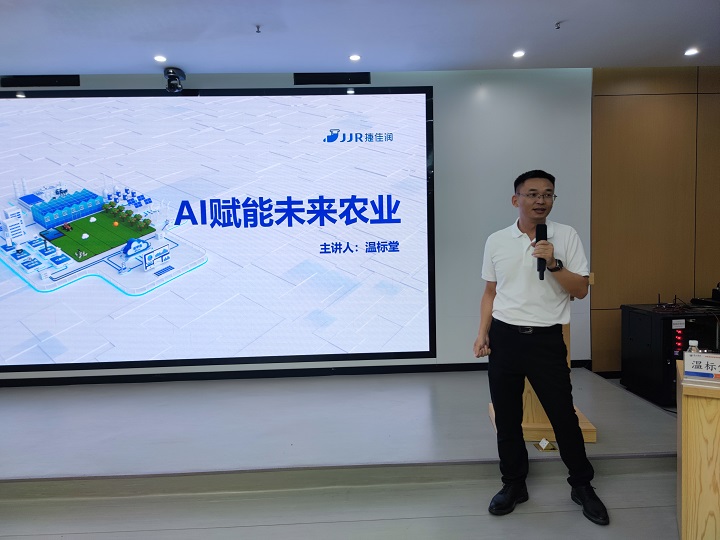 温标堂董事长首先简单介绍了捷佳润公司的发展历程、股权架构、合作伙伴等。接着,从AI驱动数字农业变革入手,以现实中的案例生动地介绍了数字农业AI应用,包括土谛AI、AI农场天气、AI巡园系统和AI农艺师。并用现场扫码的方式,教同学们如何利用AI进行土地种植品种合适度测试、预知天气、检查病虫害、温光湿等,以及经营风险和营销策略分析,并生成报告。最后,通过捷佳润公司国内外项目案例,进一步介绍了目前数字农业的先进发展。讲座内容深入浅出、介绍了目前农业生产的最先进技术,让人眼界大开。