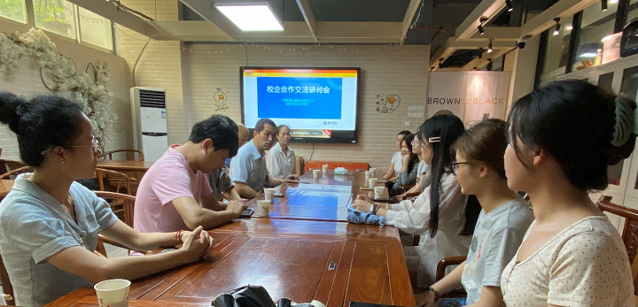 5月29日下午,best365官方网站登录入口电子商务教研室主任黄冰毅及相关教师与广西新粤西楼食品有限公司在学校E茶空间开展校企合作交流研讨会,另有多名学生代表参加。