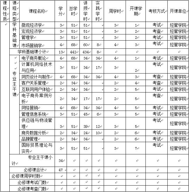 2016级电子商务双学位专业人才培养方案表1 电子商务专业各类课程学时学分分配表